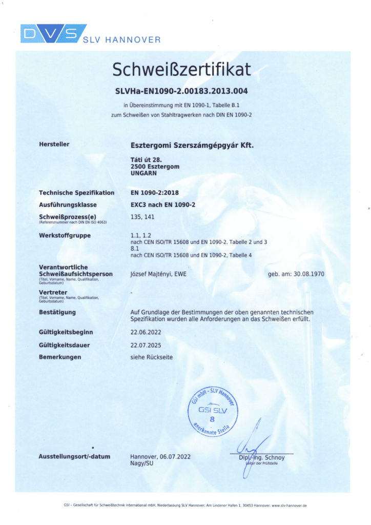 Hegesztőcsarnokunkban minősített hegesztőkkel, és sok éves tapasztalattal dolgozunk. Rendszeres hegesztési munkákat végzünk nyugaterurópai multinacionális gyáraknak évtizedek óta!